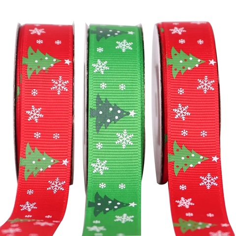 Cinta de grogrén personalizada de Navidad de fábrica en stock de alta calidad, celebración de vacaciones, cinta impresa de grogrén de Navidad para lazos